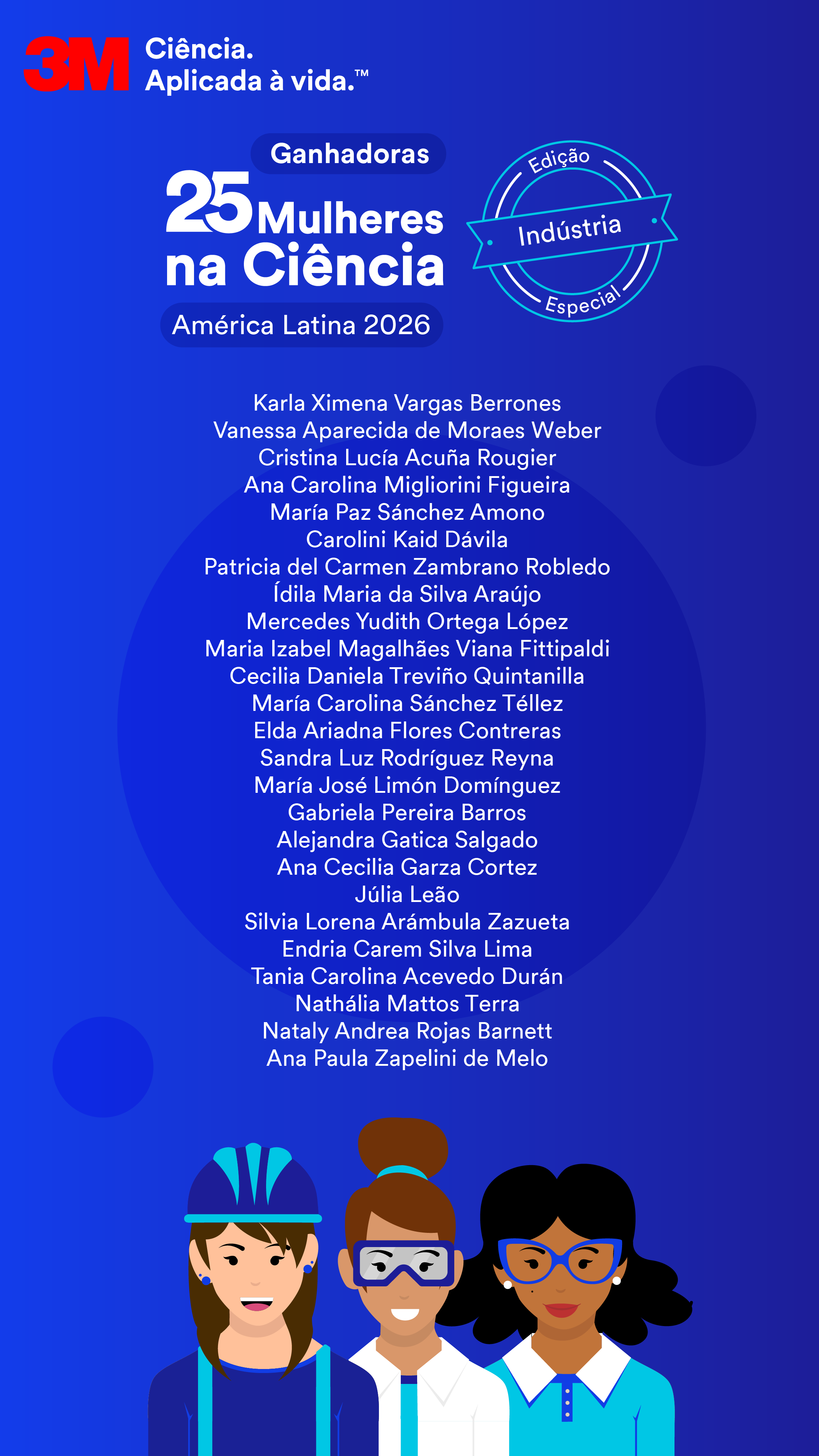3M | 25 Mulheres na Ciência é uma iniciativa criada pela 3M em 2020 para reconhecer, dar visibilidade e ampliar o trabalho de mulheres cientistas na América Latina, e, com isso, inspirar as futuras gerações a escolherem carreiras em STEM (Ciência, Tecnologia, Engenharia e Matemática).